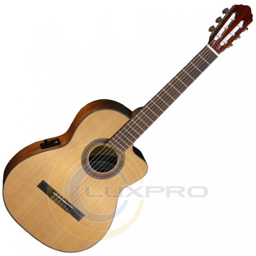Классическая гитара с вырезом и пъезозвукоснимателем.Обновление модельного ряда классических гитар.Верхняя дека из елиВерхняя дека гитары AC120CE выполнена из ели, благодаря чему имеет резонансное звучание, которое действительно улучшается с годами.Усовершенствованная система связей декиУлучшенная система связей верхней деки позволяет получить более объемное, насыщенное звучание.Более тонкое лакокрасочное покрытиеУменьшение толщины слоя лака способствует более отзывчивому звучанию инструмента.Керамический пьезозвукосниматель с предусилителем Cort CE304TДинамичная и отзывчивая гитара AC120CE оснащена керамическим пьезозвукоснимателем с предусилителем Cort CE304T, которые передают теплое и чистое звучание.Характеристики: