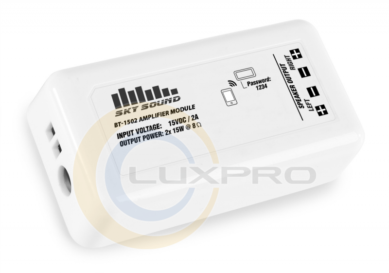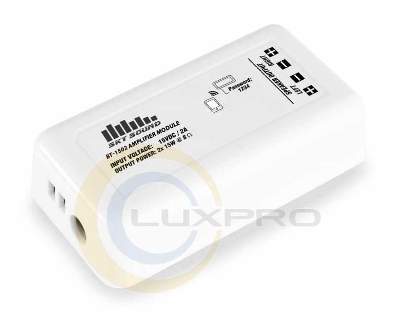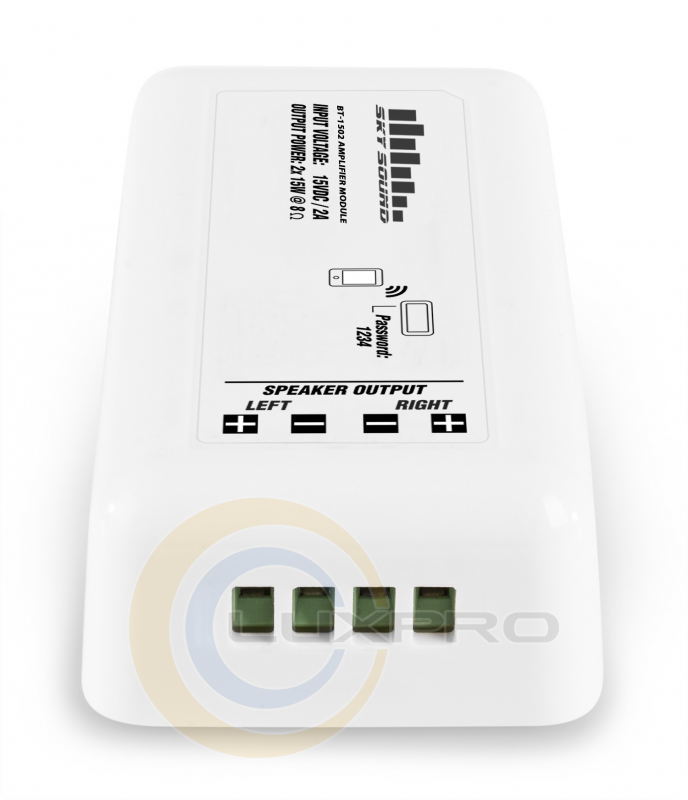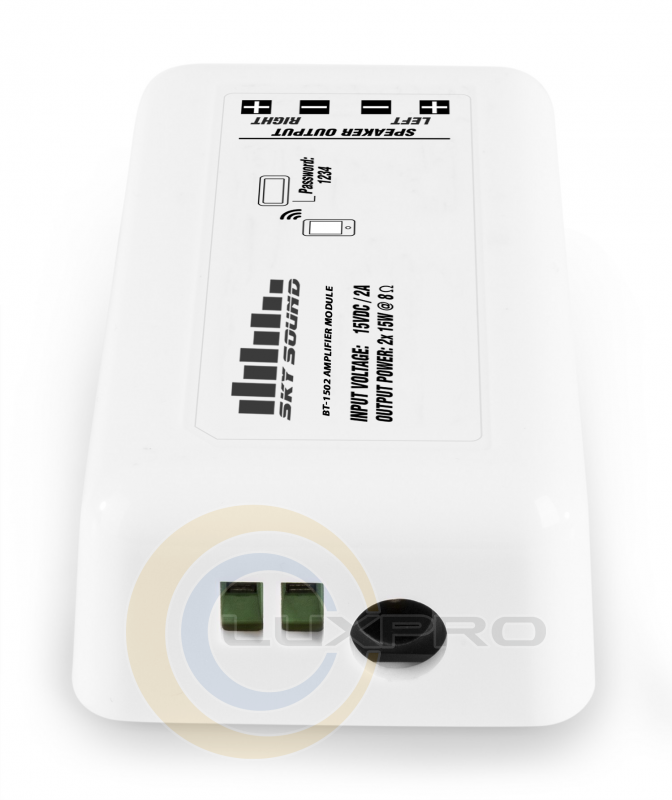 Акустический комплект Sky Sound BT-3102. SKY SOUND BT-1502 - блютуз проигрыватель со встроенным усилителем мощности, который предназначен для беспроводной трансляции аудио контента с помощью bluetooth подключения. Рабочая дистанция соединения от источника сигнала составляет 15 метров. SKY SOUND S-2631W/TW - широкополосный динамик, оснащенный высококачественным 6,5-дюймовым вуфером мощностью 10 Вт. Корпус выполнен из ABS пластика и металлической защитной решетки. Громкоговоритель прост в установке благодаря простой монтажной системе с двумя зажимами.