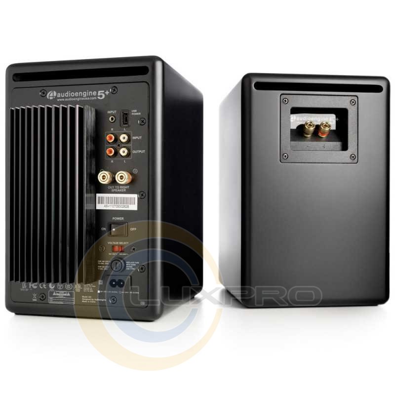 Акустическая система A5+ Black. Встроенные усилители экономят пространство и устраняют необходимость подключения Audioengine 5+ к стерео приемнику или внешнему усилителю. Необходимо просто включить левый динамик в розетку и подключить правый динамик к левому. Все внутренние компоненты A5+ настроены вместе, обеспечивая более эффективную потребление энергии, чем пассивные динамики и усилители. Благодаря превосходному разделению стереоканалов и визуализации, A5 + имеют звуковое преимущество перед бумбоксами и системами «все в одном».