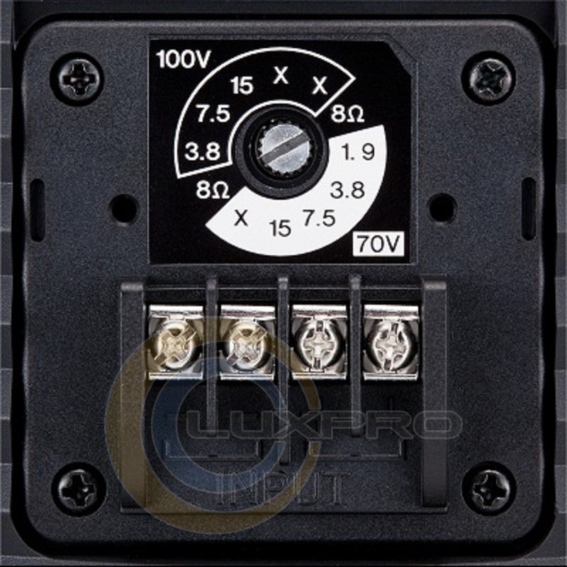 Стоит отметить наличие согласующего трансформатора, который обеспечивает работу колонки в 2-х режимах - стандартный режим для низкоомного выхода усилителя (8 Ом) или параллельное соединение в системе 70/100 В, при чем, в режиме параллельного соединения возможно корректировать выходную мощность колонки в диапазоне от 1.9 до 15 Вт. Все эти особенности делают колонку универсальной в использовании и позволяют применять ее в системах оповещения и музыкальной трансляции на различных объектах.