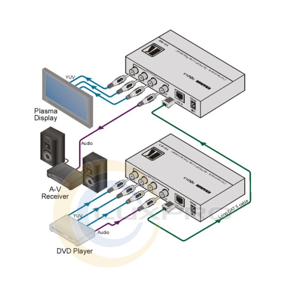 Приемник компонентного видео сигнала и аудио сигнала S/PDIF передаваемых по витой пареTP-42 - приемник компонентного видео сигнала и аудио сигнала S/PDIF передаваемых по витой паре. У TP-42 имеются выходы для аналогового компонентного видео сигнала (YUV) и для аудио сигнала (S/PDIF) с разъемами RCA. Максимальная дальность передачи входного сигнала переданного по кабелю витой пары 5 категории может превышать 100 метров. TP-42 получает сигнал по витой паре, декодирует его, и выдает на выходы YUV и S/PDIF с разъемами RCA. У прибора TP-42 имеются раздельные регуляторы уровня и компенсаторы АЧХ кабеля (EQ.) для сигналов Y, U, V и аудио сигнала. Оба прибора размещены в малогабаритных корпусах Kramer TOOLS, и питаются постоянным напряжением 12 В.ВНИМАНИЕ! Подключение к активному оборудованию Ethernet может привести к выходу из строя всего оборудования. Для подключения используйте только совместимые приборы Kramer. Совместимые приборы: TP-41, TP-42, TP-43.Характеристики: