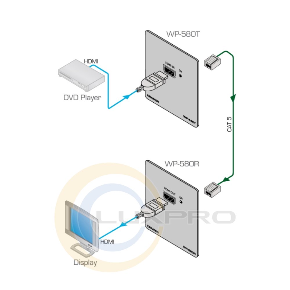 Передатчик сигнала HDMI по витой паре (активная стенная панель), для СШАWP-580T, WP-580R — высококачественный передатчик и приемник сигнала HDMI по кабелю на витой паре по технологии HDBaseT. WP-580T преобразует HDMI в сигнал, пригодный для передачи по витой паре, который затем поступает на вход приемника WP-580R. Им выполняется обратное преобразование в исходный формат.Приборы совместимы с другими приборами, использующими технологию HDBaseT, например TP-580R, TP-580T.ВНИМАНИЕ! Данные приборы работают только с кабелями экранированной витой пары (FTP или STP), разделанными на экранированные разъёмы RJ-45. Использование неэкранированных кабелей UTP не допускается.ВНИМАНИЕ! Кабели экранированной витой пары разделываются на обоих концах кабеля по одной схеме (например, EIA / TIA 568В) - т.н. "прямая" разводка. Неправильная разделка кабеля может привести к необратимому повреждению приборов.ВНИМАНИЕ! Подключение к активному оборудованию Ethernet может привести к выходу из строя всего оборудования. Для подключения используйте только совместимые приборы Kramer.Характеристики: