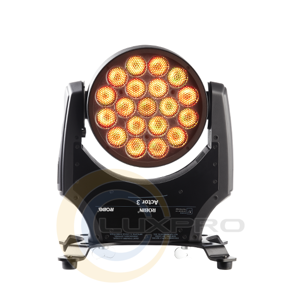 Линейка заливающих световых приборов Actor от Robe позволяет использовать технологии приборов серии LEDWash, отмеченных наградой, в фиксированных инсталяциях. Модель LEDWash 300 была преобразована инженерами для того, чтобы создать еще более маленькую статичную голову, легкую в управлении, которую можно зафиксировать вручную в нужном положении. 19 мощных 15 W RGBW светодиодов сконцентрированы в 3 кольцах в модуле с запатентованной оптической системой Robe с моторизованным зумом, что дает возможность создавать мягкий луч с углом раскрытия от 8 до 63 градусов.DMX полностью регулирует зум и цветосмешение, включая 237 предустановленных цветов, фиксированных белых, регулируемую цветовую температуру и концентрический макрос с использованием колец. Функция эмуляции затухания галогенной лампы позволяет плавно объединять приборы в световую схему с существующими традиционными световыми приборами. Actor 3 предназначен как для подвеса, так и для установки на полу. Минимальный срок службы светодиодов 60,000, делает линейку Actor выбором номер один в сфере контролируемых заливающих световых приборов для статичных инсталяций на сцене и в студии.Характеристики: