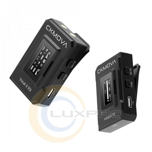 Система имеет ряд мощных функций, включая 3,5 мм выход на наушники, режим вывода моно и стерео (переключается), режим микрофонного и линейного входа (переключается), и OLED-дисплей на передатчике и приемнике. Компактный и легкий передатчик-клипс для крепления на одежду имеет встроенный всенаправленный микрофон, также есть возможность подключить внешний микрофон AC-VM1 для различных сценариев записи. CKMOVA Vocal X способна обеспечить стабильную передачу сигнала на частоте 2,4 ГГц и высококачественного звука.