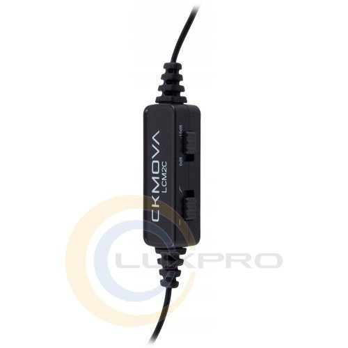 Микрофон петличный LCM2C. На блоке управления есть два переключателя. Первый предназначен для регулировки усиления, а второй переключатель позволяет включить нижний фильтр частот. Благодаря этому в неблагоприятных условиях микрофон не будет записывать множество нежелательных звуков.