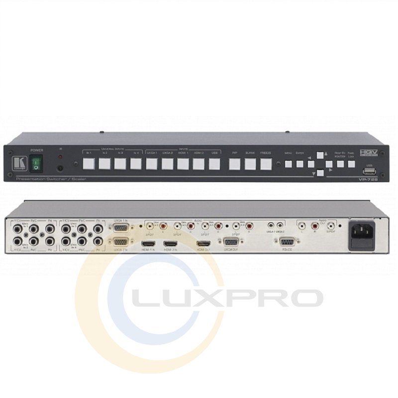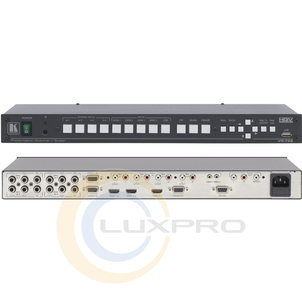 Масштабатор, коммутатор аналоговых и цифровых видео сигналов, небалансного стерео аудио сигнала и S/PDIF.VP-728 - масштабатор, коммутатор аналоговых и цифровых видеосигналов, небалансного стереофонического аудиосигнала и S/PDIF, выполняющий повышающее и понижающее масштабирование входного композитного видеосигнала, S-video, компонентного видеосигнала, HDMI, VGA.Особенности: