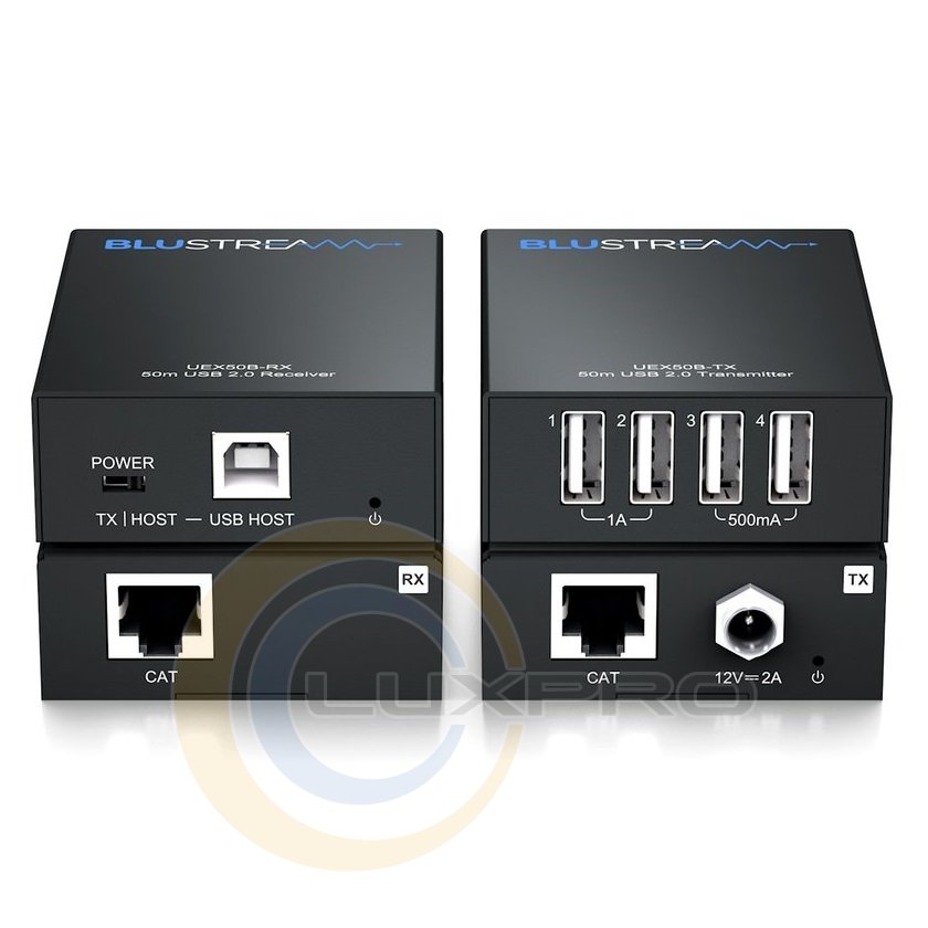 Blustream UEX50B-KIT обеспечивает расширение USB 2.0 до 50 м по одному кабелю CAT, позволяя подключать до 4 периферийных устройств USB к одному хосту USB с зарядкой/питанием. Поддерживает комбинированную пропускную способность передачи данных до 480 Мбит/с и обратно совместим с устройствами USB 1.1.