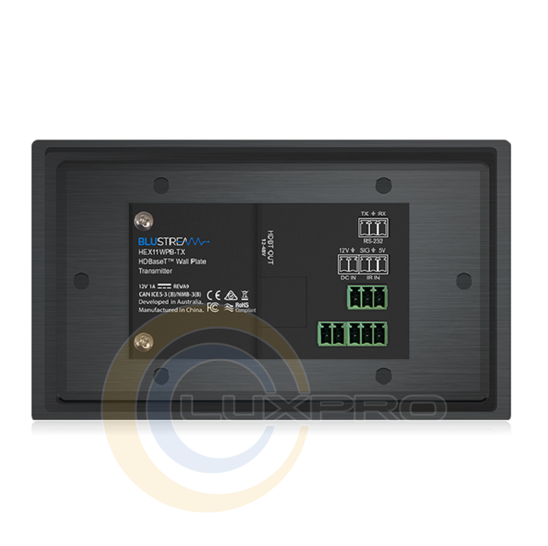 HEX11WPB-TX был разработан для работы со всеми ресиверами и матричными решениями Blustream HDBaseT™, может быть установлен как в британских, так и в европейских тыловых коробках и может питаться локально или от совместимых продуктов Blustream HDBaseT™.