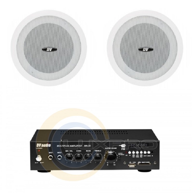Акустический комплект MA302601. Усилитель оснащен встроенным USB-проигрывателем, FM-тюнером, а так же возможностью воспроизведения аудио через Bluetooth. Кроме этого имеет два микрофонных входа, два линейных входа и линейный выход. USB-проигрыватель поддерживает флеш-накопитель объемом памяти до 16Гб. Управление усилителем может осуществляется с лицевой панели устройства или с помощью дистанционного пульта управления. Усилитель выполнен в компактном корпусе высотой 1,5U.