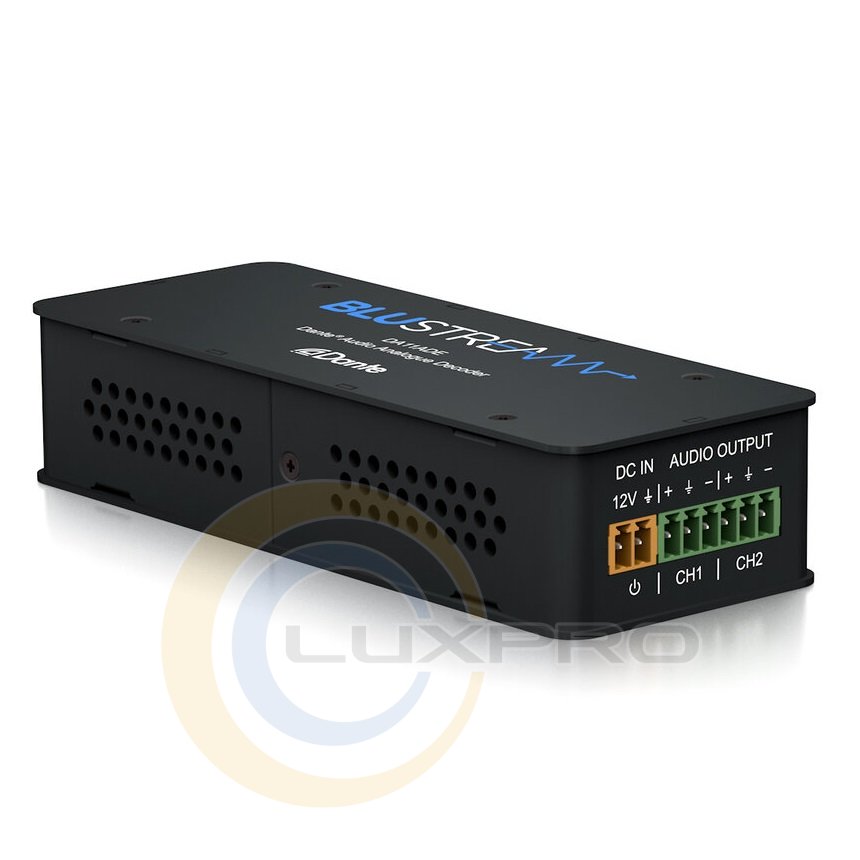 Декодер DA11ADE был разработан для декодирования цифрового сигнала Dante в несбалансированном или сбалансированном 2-канальном аналоговом аудио. Декодер DA11ADE это устройство plug&play, которое питается с помощью PoE (Power over Ethernet) от любого сетевого коммутатора PoE. DA11ADE также поддерживает аудиотранспорт AES67 RTP.