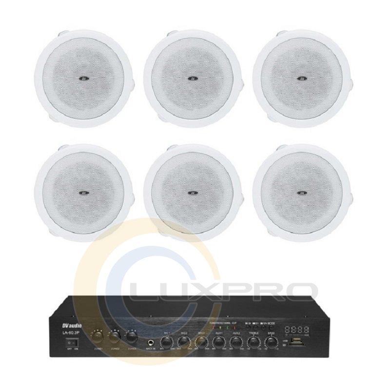 Акустический комплект LA60684. Универсальный потолочный громкоговоритель DV audio C-84 предназначен специально для установки в подвесные потолки. Громкоговоритель выполнен в прочном металлическом корпусе, а металлическая решетка надежно защищает от повреждений.