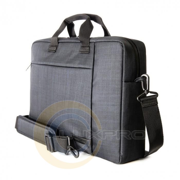Сумка также имеет съемный регулируемый наплечный ремень, а на тыльной стенке фиксацию сумки на телескопической ручке чемодана.