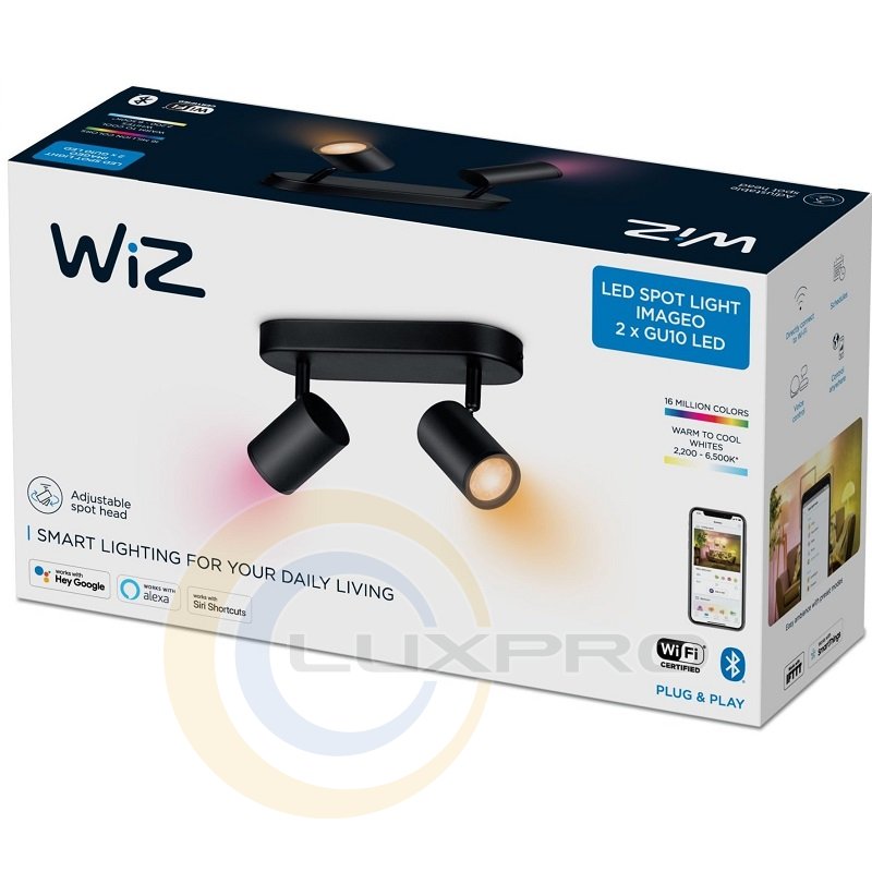 LED светильник IMAGEO Spots 2x5W 2200-6500K RGB Wi-Fi черный выбрать и купить от качественного бренда WiZ по выгодной цене в каталоге светового оборудования