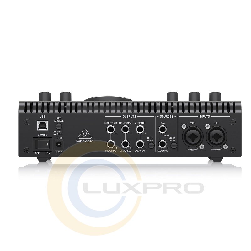 Интереснее внутренняя начинка новинки. Два микрофонных входа с предусилителями Midas с фантомным питанием +48В дополняет функция Talkback и встроенный микрофончик Talkback для переговоров с артистами. Для управления громкостью мониторов используется не обычный потенциометр, а вместо этого активная высококачественная схема на основе VCA (Voltage Controlled Amplifier).