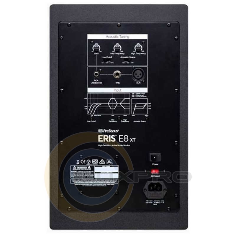 Современные звукозаписывающие студии имеют дело с разными музыкальными жанрами, поэтому PreSonus Eris E8 XT оборудован пользовательскими элементами управления, необходимыми в микшерной среде. Настройки Acoustic tuning позволяют с точностью настроить монитор в зависимости от помещения — вы получаете регуляторы Low Cut, Mid и High, а также 3-позиционный переключатель Acoustic Space для компенсации звукового влияния спикеров, размещенных у стены или в углу.