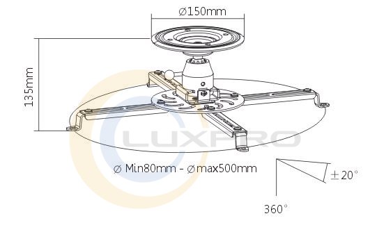 - Ceiling/ Bevel Projector Bracket, Ceiling to Projector 135mm, Tilt/Swivel-20°~+20°, 360 rotate max 25kg, universal mounting pattern up to 500mm width!!