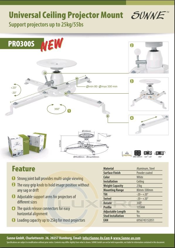 Крепеж PRO300S заказать от качественного производителя Sunne по доступной стоимости в онлайн магазине звукового оборудования LuxPRO. Крепежи потолочные под проектор на любой вкус с доставкой по Украине. Взгляните и купите также Крепежи для проекторов, ТВ в магазине ЛюксПро.