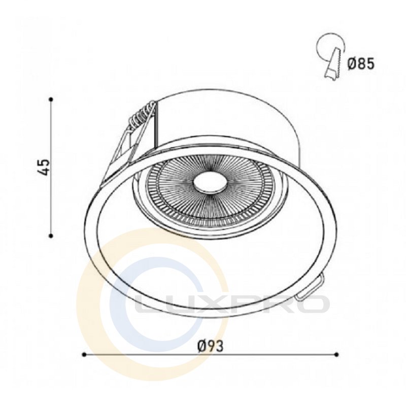 Точечный встраиваемый cветильник KD-ONE R93 BK будет хорошо смотреться в современных интерьерах. Осветительный прибор изготовлен из алюминия, имеет цоколь GU10.
