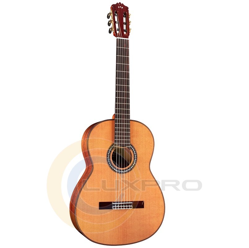 C9 CD W/C - классическая гитара изготовлена с применением традиционной испанской конструкцией пружин и пятки грифа, чтобы обеспечить динамичность отзывчивость верхней деки и полнозвучную передачу вибрации струн по всему корпусу. Нижняя дека и обечайки из массива красного дерева обеспечивают энергичные упругие средние частоты и приятную "шершавость" звучания. Гриф C9 имеет С-образный профиль и плоскую накладку из палисандра, характерные для традиционных классических гитар, но также получил ряд современных решений, таких как двухсторонний анкерный стержень для сохранения стабильности.