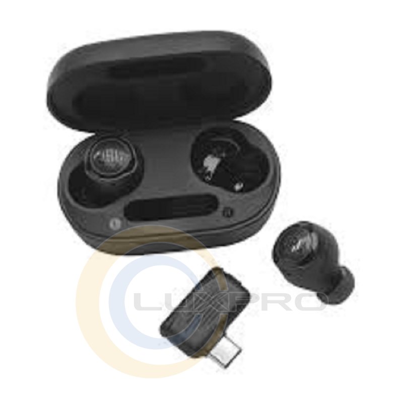 Наушники QUANTUM TWS AIR (JBLQTWSAIRBLK). Установите соединение с низкой задержкой 2,4 ГГц с совместимыми устройствами с помощью дополнительного USB-C-адаптера, надежно удерживаемого в корпусе зарядного устройства. Наушники JBL Quantum TWS Air совместимы со всеми устройствами с поддержкой Bluetooth, такими как смартфоны и планшеты или Nintendo SwitchTM.
