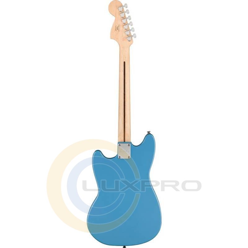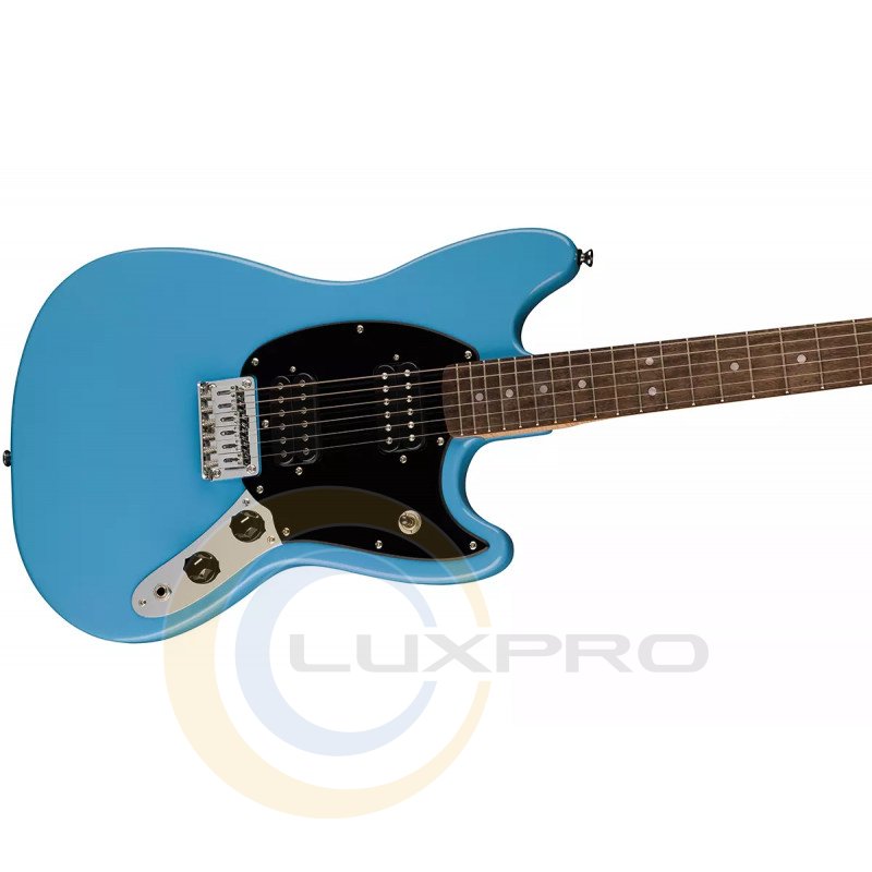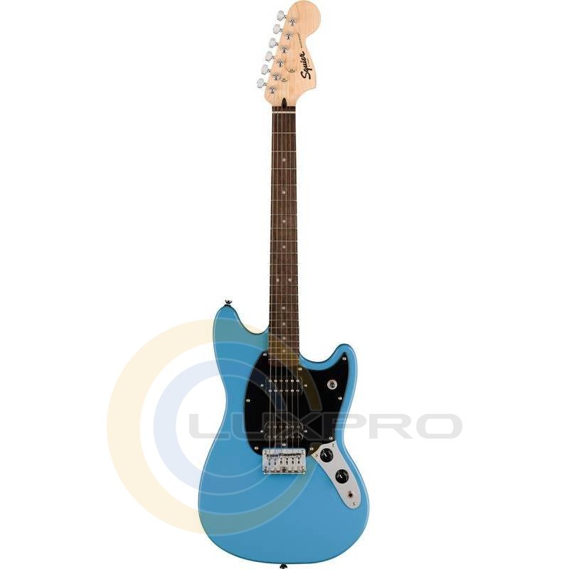 SONIC MUSTANG HH LRL CALIFORNIA BLUE - электрогитара имеет изящный и привлекательный "С"-образный профиль грифа и тонкий, легкий корпус для оптимального комфорта игры. Пара хамбакеров звукоснимателей Squier (HH) обеспечивают насыщенный, высокомощный тембр звука. Среди других особенностей этой модели - короткая длина мензуры 24", 6-седельный жесткий бридж для надежного интонирования, колки с закрытыми механизмами для плавной и точной настройки и прочная хромированная фурнитура, которая обязательно привлечет к себе внимание.