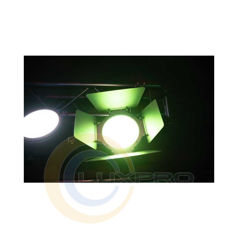Прожектор LED Theatre COB 100 RGB+WW. Световой конус можно легко сломать или уменьшить с помощью входящих в комплект ограничителей крыла. В отличие от обычных SMD-светодиодов с небольшим количеством светодиодных чипов, COB-светодиод имеет много чипов, расположенных в ряд, что обеспечивает равномерное распределение света. Световой луч COB-светодиода выглядит как равномерный свет, а не как отдельные световые точки. Они имеют чрезвычайно долгий срок службы до 50 000 часов и потребляют очень мало энергии.
