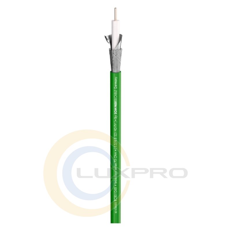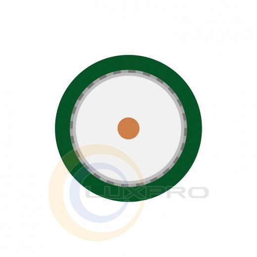 Толстая медная жила диаметром 1 мм (AWG 18) и комбинированный экран (плетеный медный + фольгированный AL/PT) обеспечивают низкий уровень затухания и большую дальность передачи сигнала. Диаметр кабеля 7,1 мм, удельный вес 64 г/м. Прочная износостойкая оболочка из ПВХ (PVC) зеленого цвета, рабочие температуры от -30 до +70 °C. Кабель применяется для работы в студии, в цифровом и кабельном телевидении, пригоден для использования в сухих и влажных помещениях.
