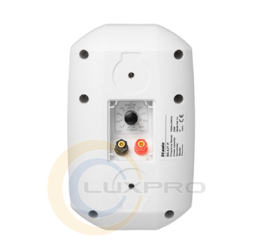 DV audio MS-4.2T IP White. Двухполосная акустическая система предназначена для передачи музыки и речевого оповещения в помещениях ресторанов, торговых центров, кафе, гостиницах, офисах, спортивных клубах. Серия MS - имеет более прозрачный и качественный звук в отличии от хорошо зарекомендовавшей себя серии PB. Требует настенного монтажа. Пластиковый корпус с металлической решеткой, кронштейн в комплекте. Несколько режимов работы. Имеет уровень защиты IP65, что позволяет использовать эти системы на улице - парковки, фасады зданий, летние площадки, веранды ресторанов, звук в парках (OUTDOOR).