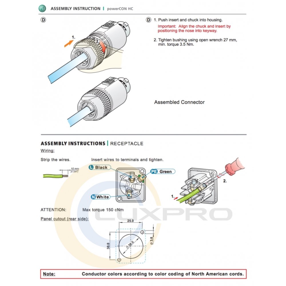Гнезда powerCON TRUE1 являются чрезвычайно прочными и надежными соединяющими разъемами для однофазной сети переменного тока предназначенными для обеспечения питания приборов с пропускной способностью силы тока 16/20 А. Специальный сетевой разъем с поворотным фиксатором оснащен 3-х контактным соединением высоковольтных линий для удовлетворения потребностей систем распределения электроэнергии и расходных материалов для профессионального аудио и светового оборудования. Удачная компоновка с прочным корпусом в сочетании с фиксирующим механизмом необходима для того, чтобы гарантировать безопасное подключение к источнику питания.