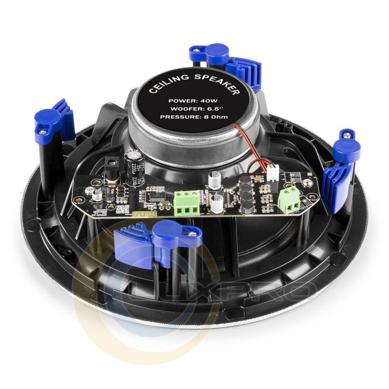 Также имеется возможность использования линейного входа на задней панели активного динамика для воспроизведения звука по сигнальному кабелю с устройств, которые поддерживают линейные выходы (телевизоры, компьютеры, планшеты, видеопроигрыватели). Динамик оснащен решеткой из стальной сетки на магнитных креплениях, которую можно легко открыть для установки или настройки.