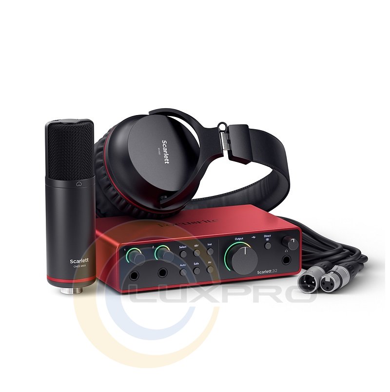 Студийный комплект Focusrite Scarlett 2i2 Studio предоставляет решение все-в-одном для записи высокого качества. В комплект входит интерфейс Scarlett 2i2, студийный конденсаторный микрофон CM25 MkIII и закрытые наушники SH-450. Эти наборы включают все необходимое для записи вокала и акустических инструментов студийного качества сразу из коробки.