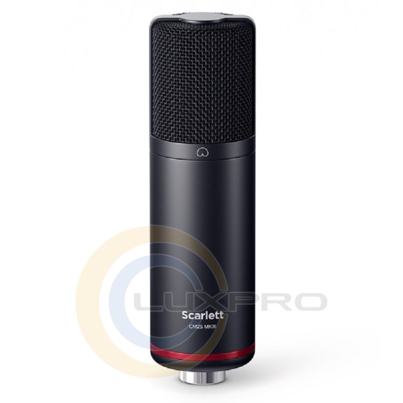 - комплектация: аудиоинтерфейс Scarlett 2i2, микрофон CM25 MkIII, студийные наушники SH-450, USB кабель, XLR кабель, ПО, инструкции;