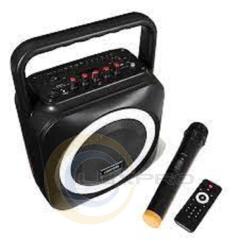 - тип: портативная акустическая система с Bluetooth, USB / SD / MP3 / FM-плеером и беспроводным микрофоном;