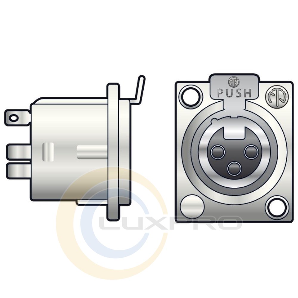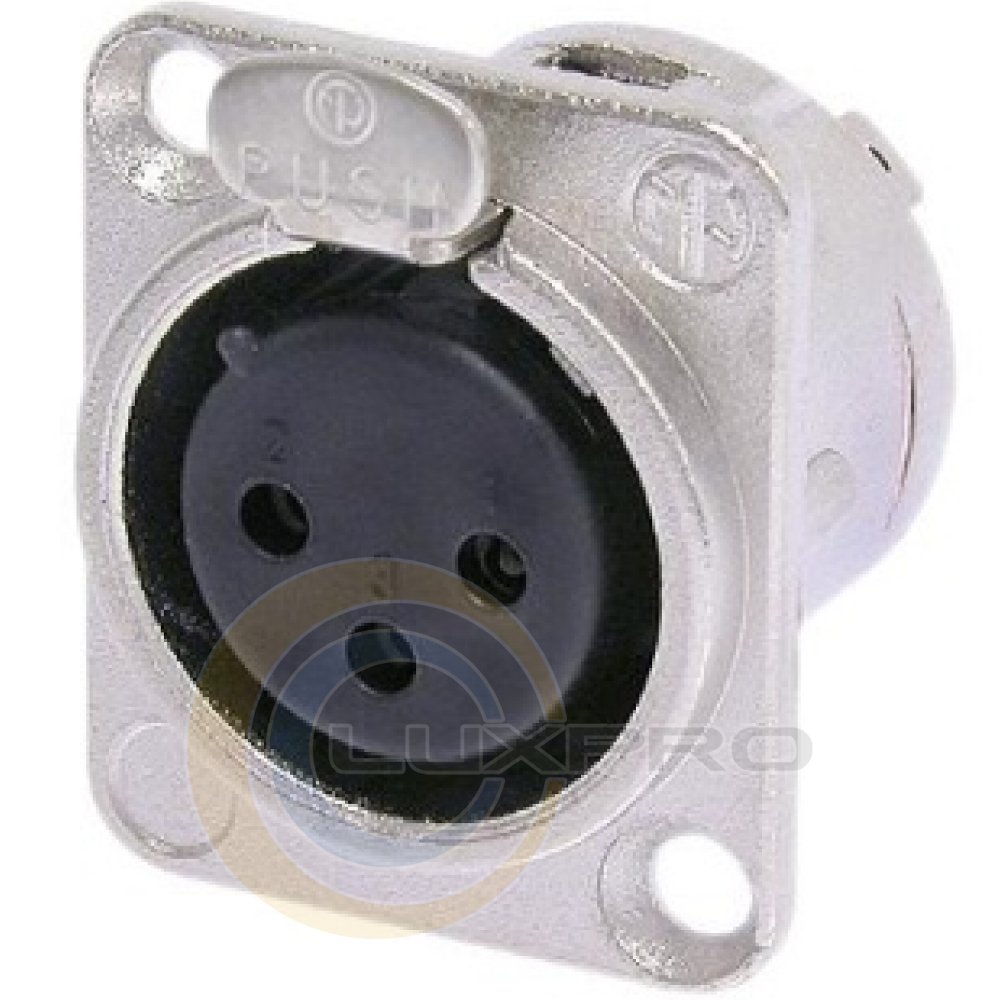 Предназначенный для установки на панели под пайку контактов. Универсальный разъем XLR D-формфактора с металлическим корпусом. Легкая фиксация коннектора. Контакты с серебреным напылением и полированными площадками.