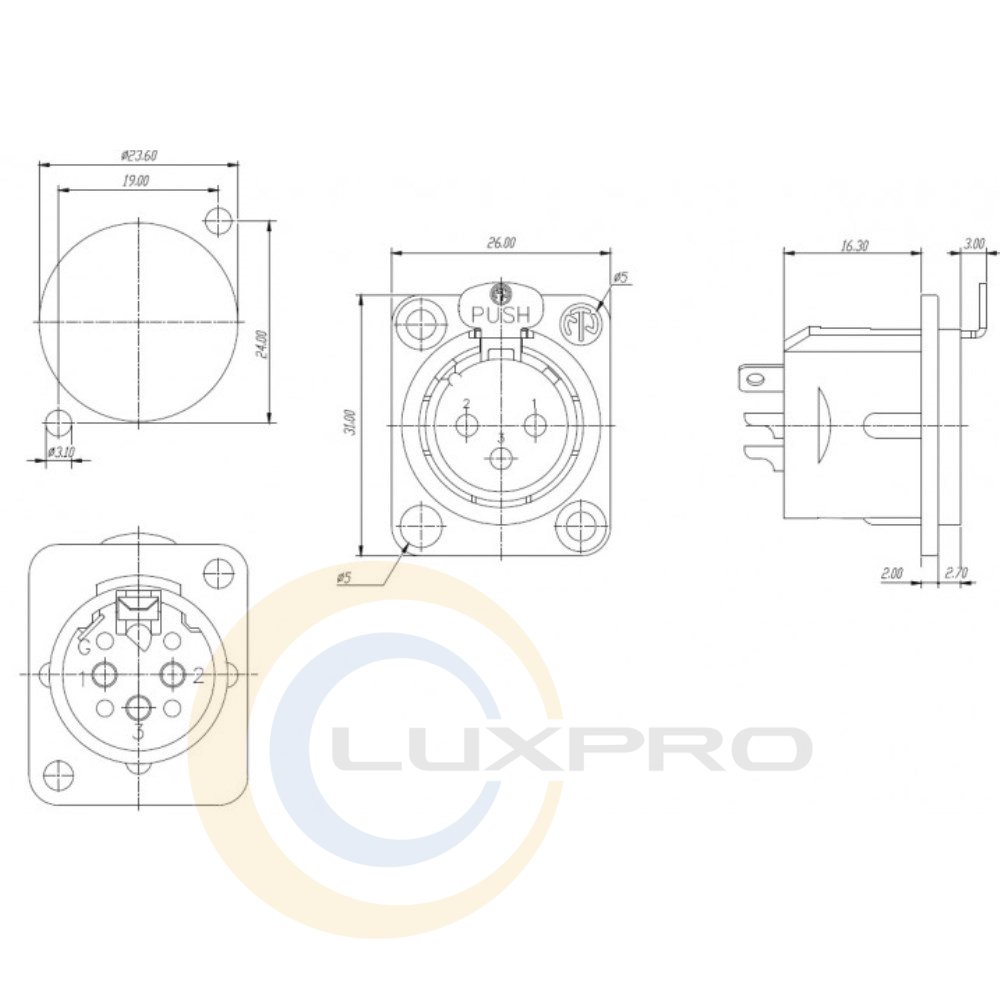 Предназначенный для установки на панели под пайку контактов. Универсальный разъем XLR D-формфактора с металлическим корпусом. Легкая фиксация коннектора. Контакты с золотым напылением и полированными площадками.