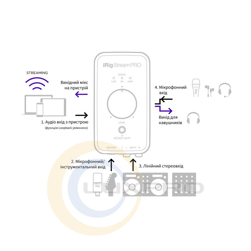 - комплектация: интерфейс iRig Stream Pro, кабели: Lightning на mini-DIN, USB-C на mini-DIN,USB-A на mini-DIN, 2 x батарейки AA, Velcro липучка.
