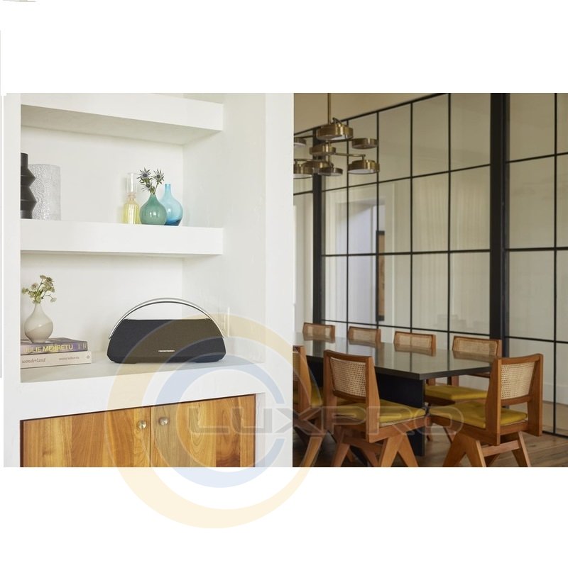 Сохраняя фирменный полукруглый силуэт Harman-Kardon Go+Play, новое поколение отличается изысканным и приподнятым корпусом из высококачественных материалов, обтянутым роскошным текстилем. Его изящный дизайн включает в себя верхнюю часть из закаленного стекла с сенсорным управлением и ручку из анодированного алюминия для удобной транспортировки по дому. Поэтому Harman-Kardon Go+Play 3 представляет собой отличное решение для создания домашней акустической системы, которое отражает потребности слушателя и легко интегрируется в любой современный интерьер.