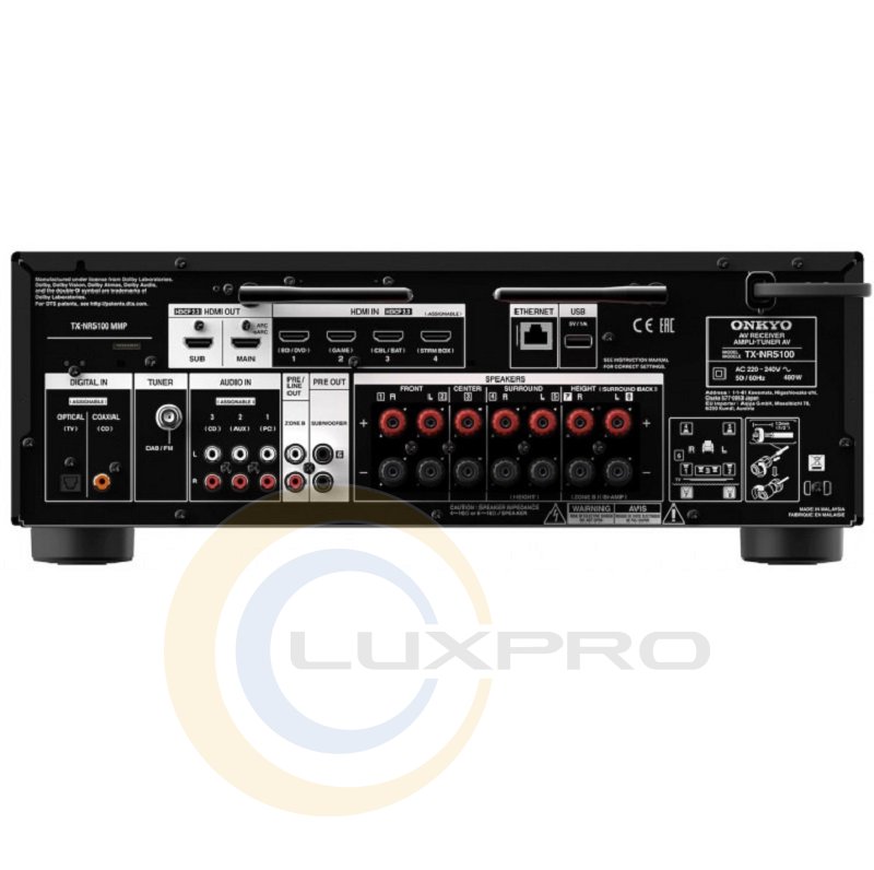 Onkyo TX-NR5100 оснащен четырьмя HDMI-входами с поддержкой видео 4K, Dolby Vision и HDR10. При подаче на HDMI-вход сигнала с параметрами 1080p, может быть выполнен его апскейлинг до 4K. Также аппарат имеет хороший набор цифровых и аналоговых входов для подключения различных источников сигнала. Также в данной модели предусмотрен Bluetooth с поддержкой High Quality Audio. Ресивер также имеет выход для озвучивания дополнительной зоны. Благодаря информативному дисплею, продуманному размещению органов управления на передней панели и пульте ДУ, а также удобной экранной графике, AV-ресивер очень прост в настройке и использовании.