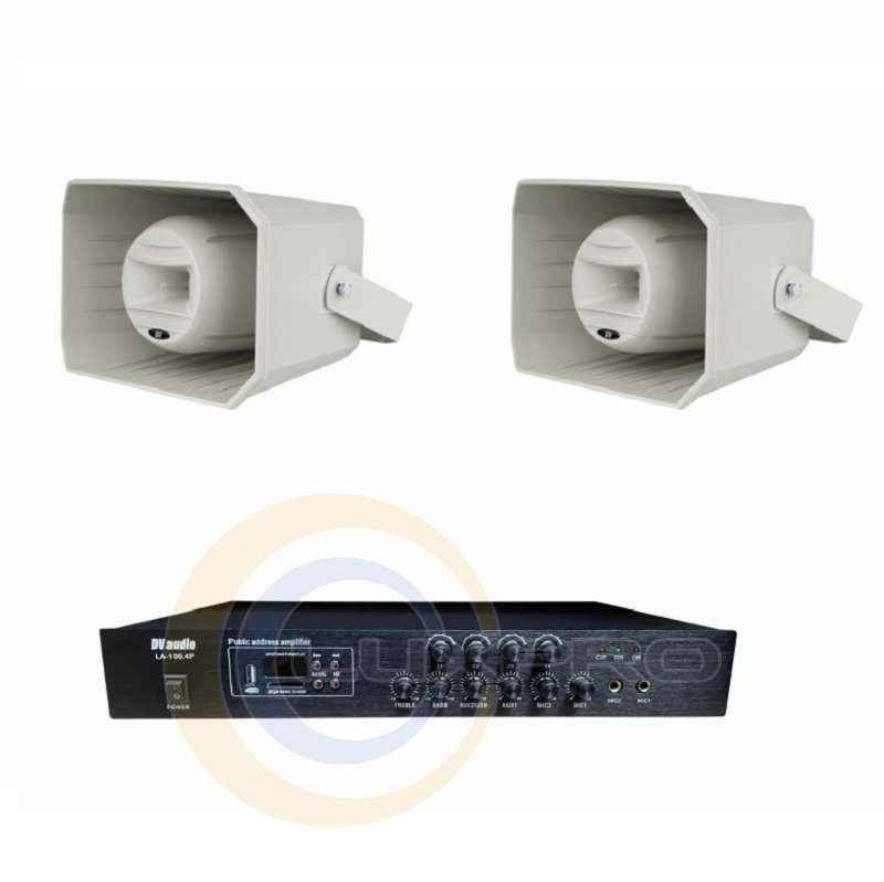 - Настенная трансляционная акустика и рупорные системы оповещения