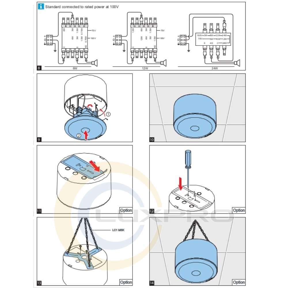 - LM1-TB - шасси для установки в ячейку подвесного потолка/пружинное кольцо.