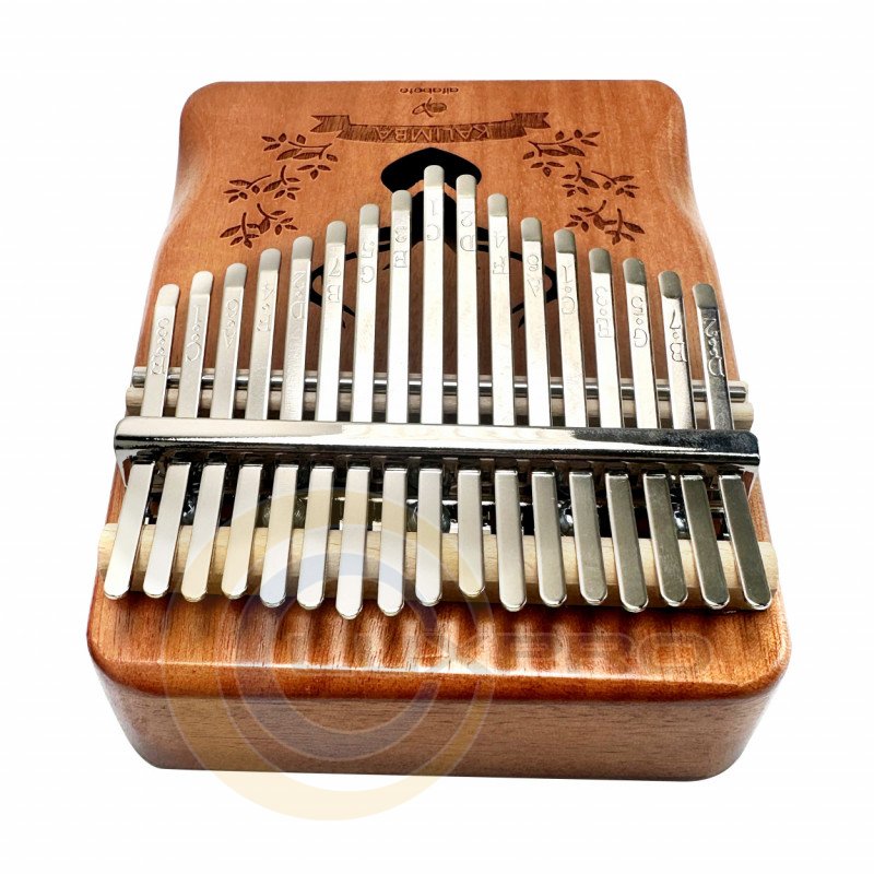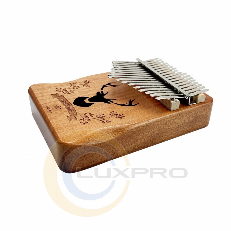 Корпус калимбы Luna17D изготовлен из высококачественного красного дерева и покрыт крепким лаком, что придает ему блеск и долговечность. Инструмент оснащен 17 щипками, каждый из которых имеет уникальный настроенный тон, позволяя создавать чистые и эмоциональные музыкальные композиции.