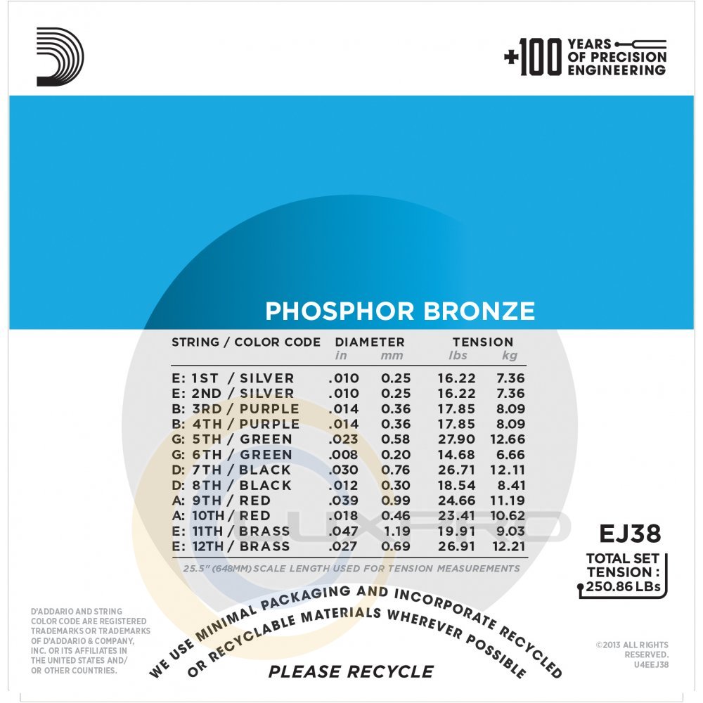 Струны D`Addario Phosphor Bronze имеют обмотку из устойчивой к коррозии фосфорной бронзы намотанной на шестигранные средечники из углеродистой стали. Фосфорную бронзу в производстве струн впервые представили D`Addario в 1974 году. Гитары со струнами из фосфорной бронзы звучали ярко, с теплотой и очень сбалансированно. В итоге получаем живучие струны с ярким звучанием и превосходной интонацией.Характеристики:
