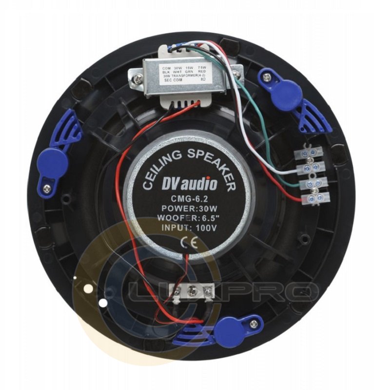 Потолочная АС DV audio CMG-6.2. Двухполосные потолочные громкоговорители для утопленного (встраиваемые) монтажа могут применяться в самых различных областях. Это полнофункциональные громкоговорители для воспроизведения речи и музыки в магазинах, торговых центрах, школах, офисах, спортивных залах, гостиницах и ресторанах. В комплект входят цельный двухполосный громкоговоритель и рама с согласующим трансформатором 100V, установленным с тыльной стороны. С лицевой стороны встроена круглая металлическая решетка на магнитах. Благодаря своему внешнему виду и нейтральному белому цвету громкоговоритель ненавязчиво вписывается практически в любой интерьер. Опционально возможно приобрести решетку черного цвета.