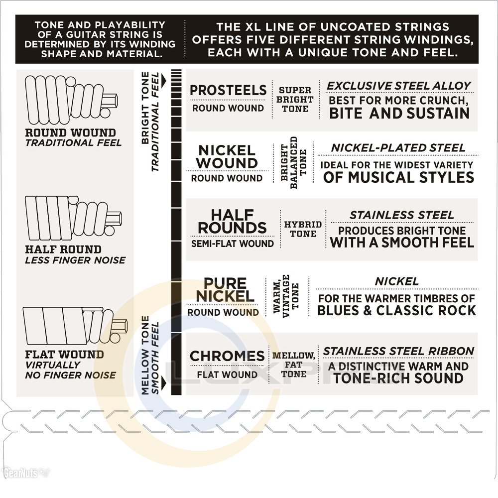 круглая обмотка из никелированной стали для характерного яркого звучания;