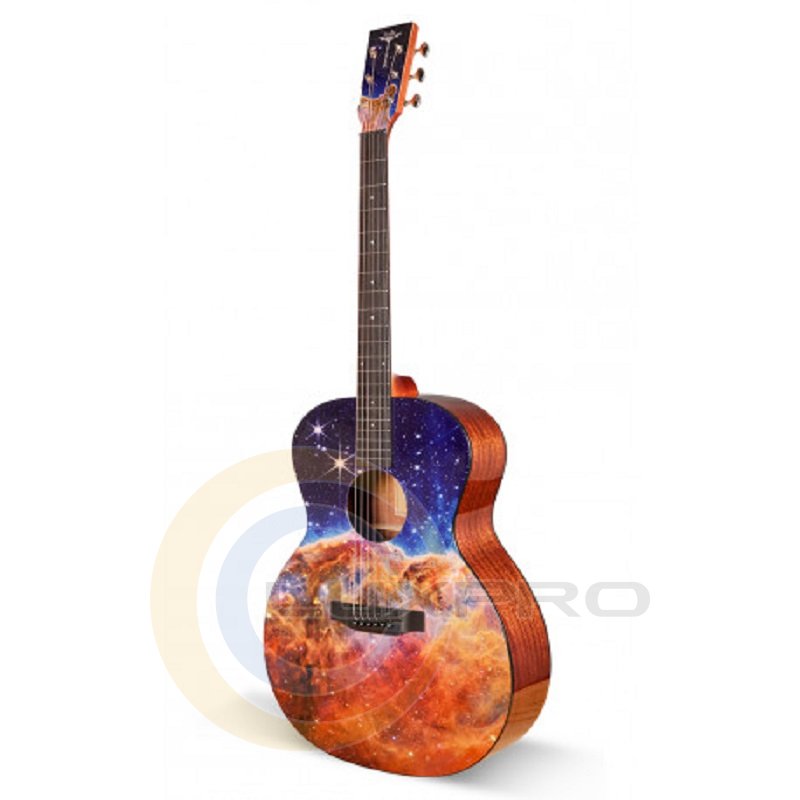 Электроакустическая гитара V-3 Stelliferous Era. Форма – гранд аудиториум. Топ – цельная, ситхинская ель. Задняя противня и боковины – махагон. Гриф – африканский махагон. Бридж и накладка на гриф – искусственный эбони. Финиш – зеленый принт с черным узором. Электроника – TYMA T-50. В комплекте – фирменный гитарный чехол.