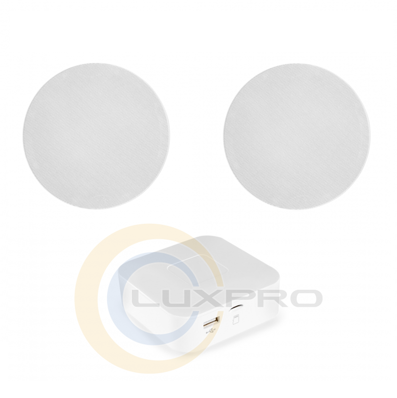 Акустический комплект BT-6502 WHITE. SKY SOUND BT-230 - блютуз проигрыватель со встроенным усилителем мощности, который предназначен для беспроводной трансляции аудио контента с помощью Bluetooth подключения. Идеально подходит для скрытого монтажа в потолочные поверхности с целью подключения встраиваемых акустических систем. Рабочая дистанция беспроводного соединения от источника сигнала звука составляет от 10 до 15 метров.