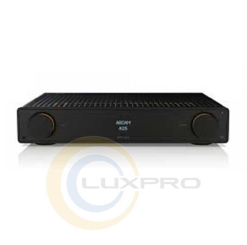 ARCA25EU - трансляционный усилитель обладает лучшими характеристиками и наилучшим звучанием в линейке усилителей Arcam Radia, превосходя модели Arcam A5 и Arcam A15. В отличие от своих меньших собратьев по классу усиления в классе A/B, A25 относится к классу G и может похвастаться мощностью 100 Вт на канал. Специфика такой конструкции состоит в том, что до достижения мощности в 20 Вт на канал аппарат работает в чистом A-классе, а далее переходит в класс A/B. Массивные ручки с подсветкой придают корпусу из анодированного алюминия нотку роскоши, а в комплект входит компактный пульт дистанционного управления. На фронтальную панель вынесен выход для наушников (мини-джек).