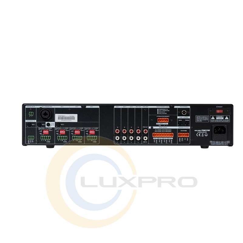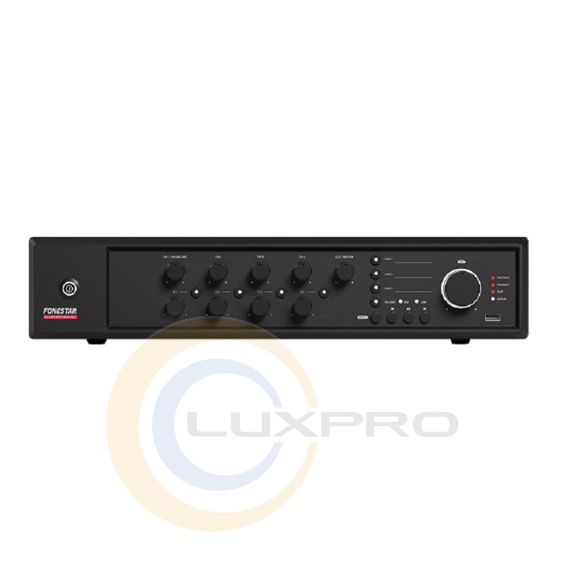MAX-240Z - трансляционный усилитель является наилучшим решением для систем оповещения и фонового озвучивания с большим количеством акустических систем, действующих на линии 100 В. Усилитель оснащен низкоомным выходом для работы с бестрансформаторными акустическими системами, а также укомплектован плеером в качестве источника фоновой музыки.