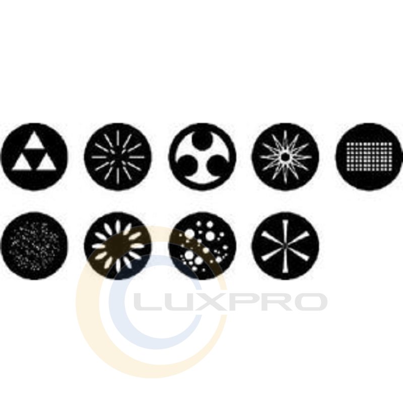 - колесо гобо 2: 9 вращаемых гобо + открытая позиция;