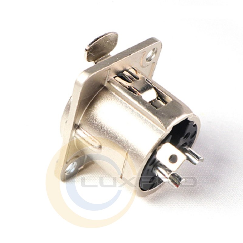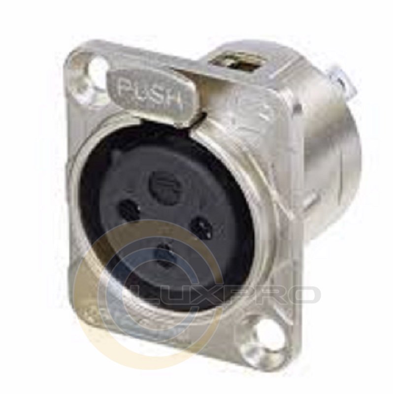 RC3FDL - разъем панельный "мама" 3-контактный, стальной замок, фланец типа D, хромированный корпус, контакты под пайку.